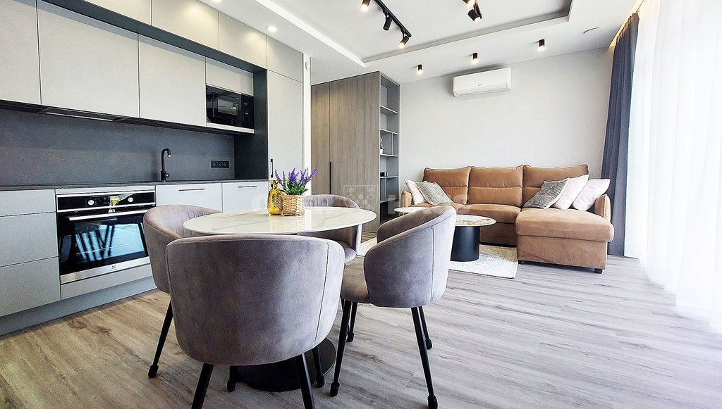 - Virtuvė su visa reikalinga buitine technika: indaplovė, orkaitė, skalbimo mašina