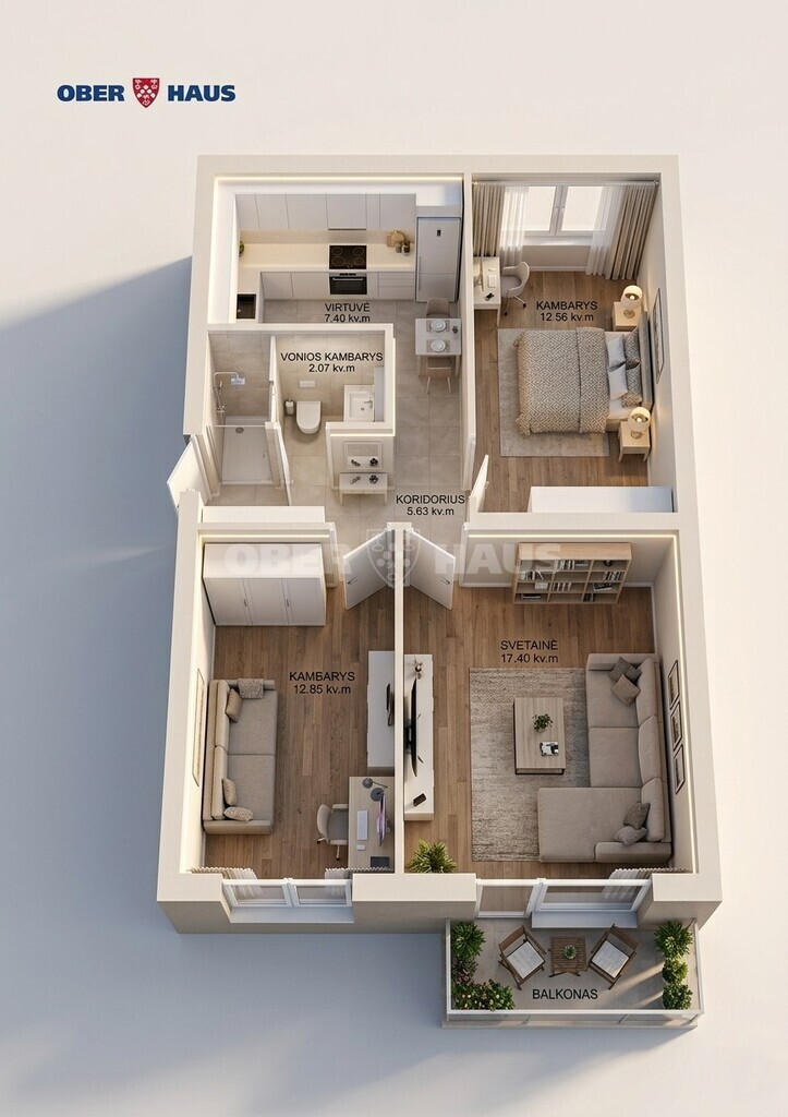 • Funkcionalus išplanavimas: 3 nepereinami kambariai – privatumas kiekvienam šeimos nariui.