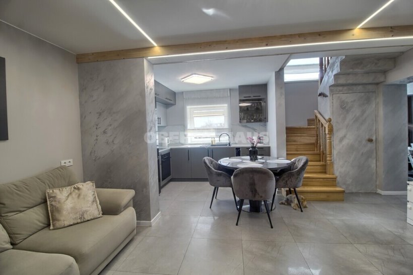 In Voveriškės, in a great strategic location, in a newly built residential block, A++ energy class detached houses with partial finishing are for sale! If necessary, you can agree with the developer on full installation work. Advantages: - newly built and fully formed block of private houses consisting of 20 houses - A++ energy class - excellent strategic location with asphalted access to the block - city communications: electricity, water and sewage - stormwater drainage - each house will have about 7 ares of land plot Installation: - houses are sold with partial finishing 95% complete - foundations are bored piles insulated with finnfoam polystyrene 25cm on the outside, 10 cm on the inside, 10 cm on the bottom - walls are arch blocks (18cm) insulated with 30 cm of neopore polystyrene, reinforced and silicone decorative plaster applied - brick internal partitions of the house (blocks) - wital prestige therm 6-chamber 8.6 cm wide plastic windows - roof rukki classic with acoustic coating (30-year warranty) The ceiling is insulated with 45 cm layers of ekowool wool - floors insulated with eps 80 polystyrene - heated floors laid out and concreted - heat recovery system pipeline laid out - domestic sewage and water supply pipeline laid out to the appliance connection points (according to the client's needs) - electricity laid out to the socket points (according to the client's needs) - interior walls plastered - plaster ceilings installed - terrace railings installed - terrace installed - leveled plot, gravel poured around the house and for parking two cars near the house If you are looking for your own house near the city, in a newly formed and under construction quarter - we look forward to hearing from you! More information can be found on the project page www.sviesostakas.lt Einars +37060090529