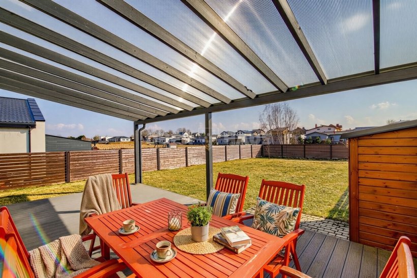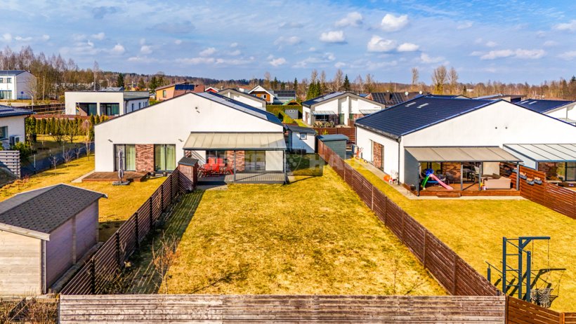 Namui priklauso 5 a sklypas su privačiu, erdviu vidiniu kiemu ir terasa – ideali vieta rytinei kavai, jaukiems vakarams ar laikui su šeima bei draugais. Aptverta teritorija užtikrina saugumą ir privatumą, o aplinkinė gamta leidžia mėgautis ramybe kasdien.
