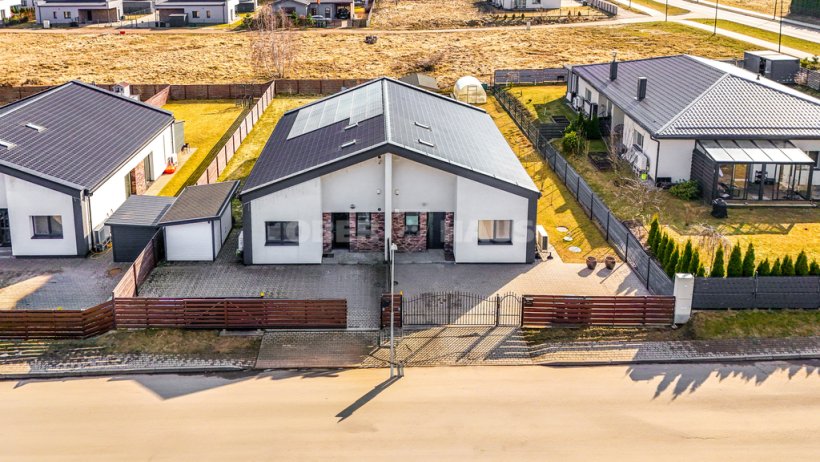 2026 metais įrengtas, modernus ir funkcionaliai suplanuotas namas sukurtas patogiam šeimos gyvenimui. Apgalvotas išplanavimas užtikrina erdvės pojūtį ir komfortą – trys atskiri miegamieji, du sanitariniai mazgai, erdvi ir šviesi svetainė, sujungta su virtuve bei išėjimu į terasą. Tai erdvė, kurioje natūraliai susilieja kasdienis gyvenimas ir poilsis. Papildomą patogumą suteikia garažas bei talpi techninė patalpa.