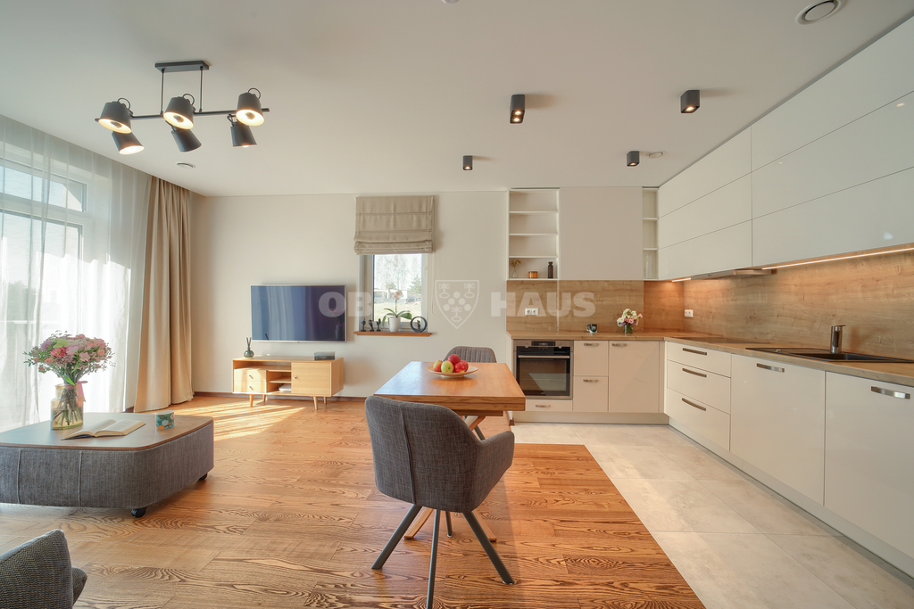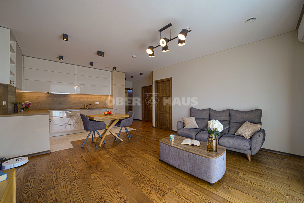 • Качественная отделка — долговечные полы из ясеня, двери из массива дуба, кухонный гарнитур, изготовленный на заказ.