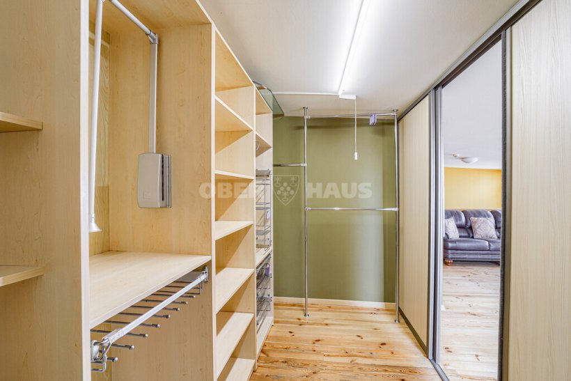 Главная спальня с двуспальной кроватью, рабочим столом и вместительными шкафами